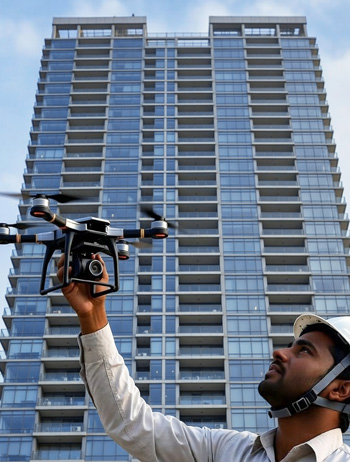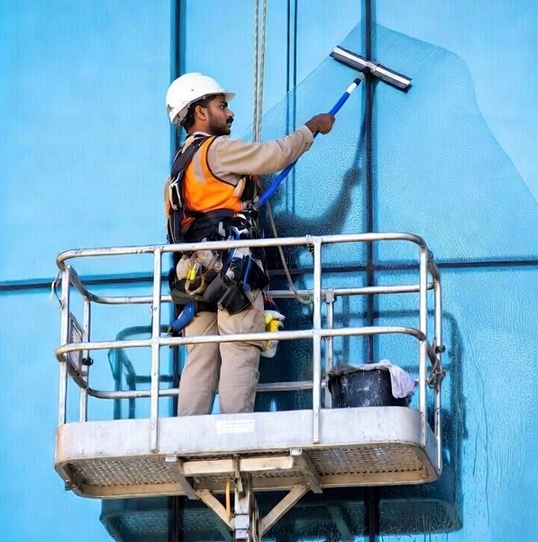 Façade cleaning for commercial sites involves the systematic cleaning and maintenance of exterior surfaces such as glass, stone, ACP, and metal cladding using BMUs, cradles, or rope-access systems. The process follows site-specific SOPs, approved chemicals, and safety-compliant access equipment to ensure effective soil removal without surface damage. Regular execution helps prevent material deterioration, ensures regulatory compliance, and preserves the building’s structural and visual integrity.
